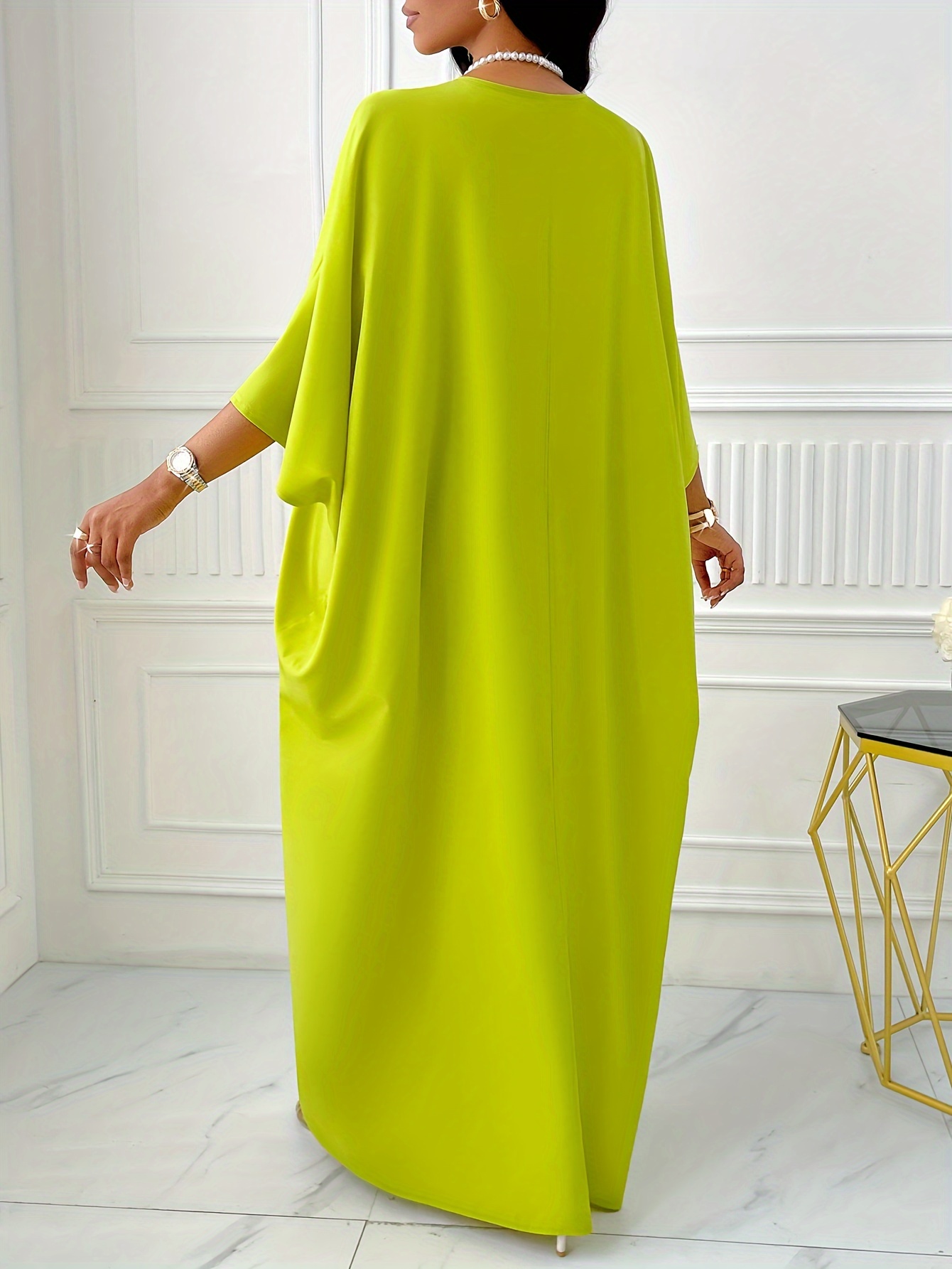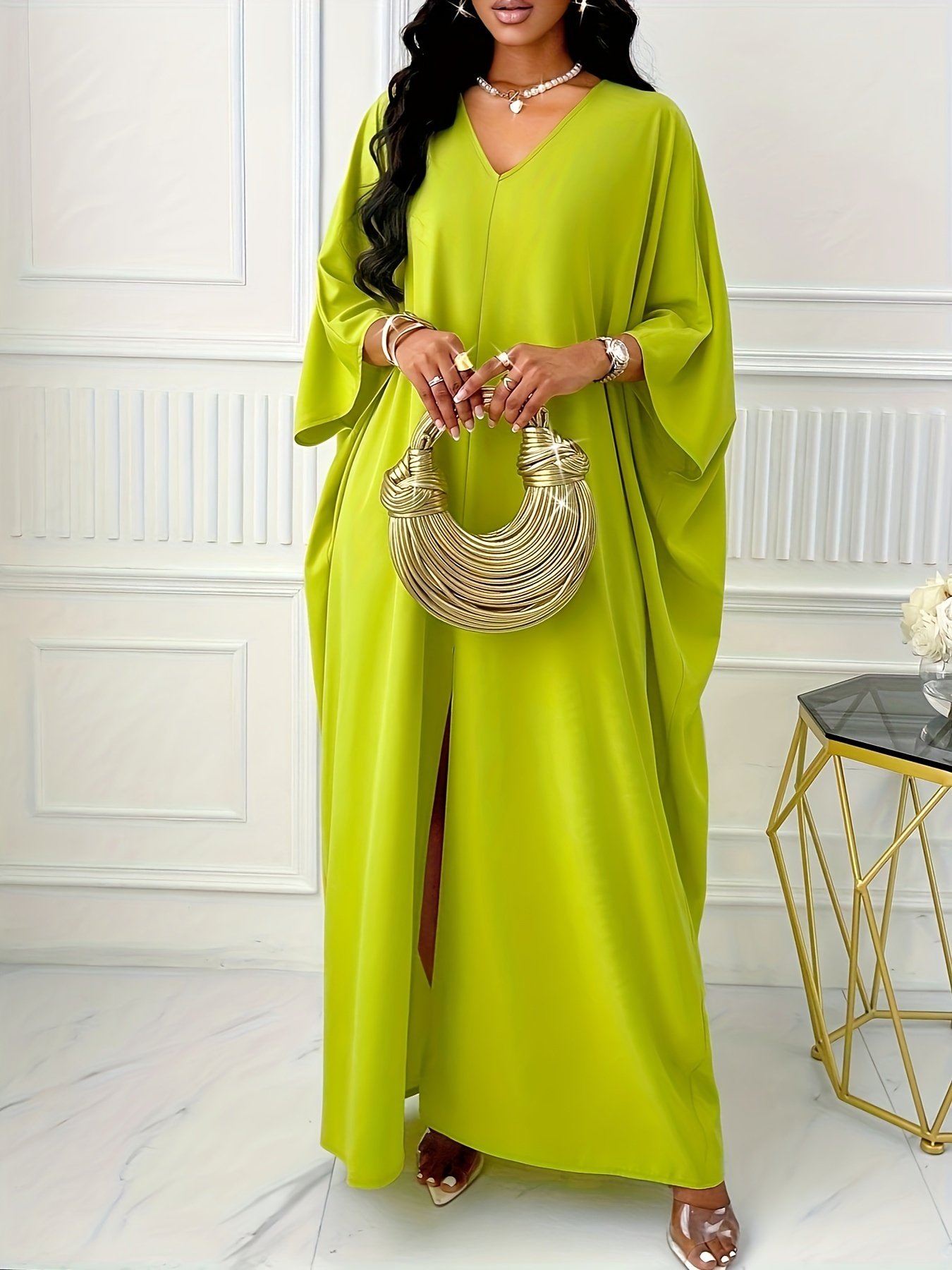 Women’s Solid V-Neck Cap Sleeve Tunic Dress with Side Slit